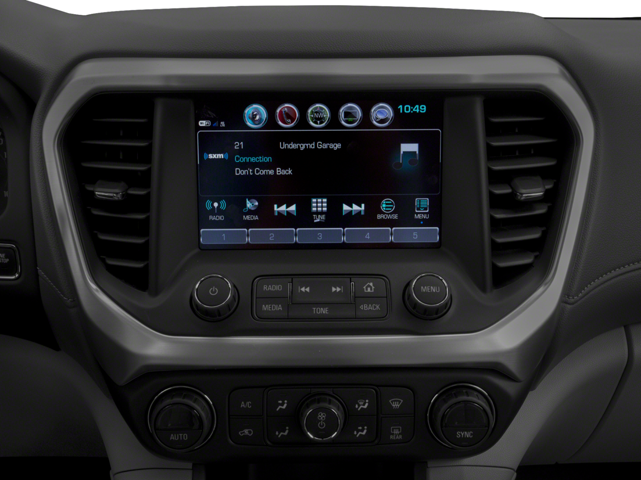 - Audio system, 8" diagonal Color Touch Screen with GMC Infotainment System, AM/FM/SiriusXM USB ports, auxiliary jack, Bluetooth® streaming audio for music and most phones, advanced phone integration featuring Apple CarPlay, Android Auto and voice-activated technology for radio and phone (Upgradeable to (IO6) 8" Diagonal Color Touch Screen Navigation with GMC Infotainment System.)